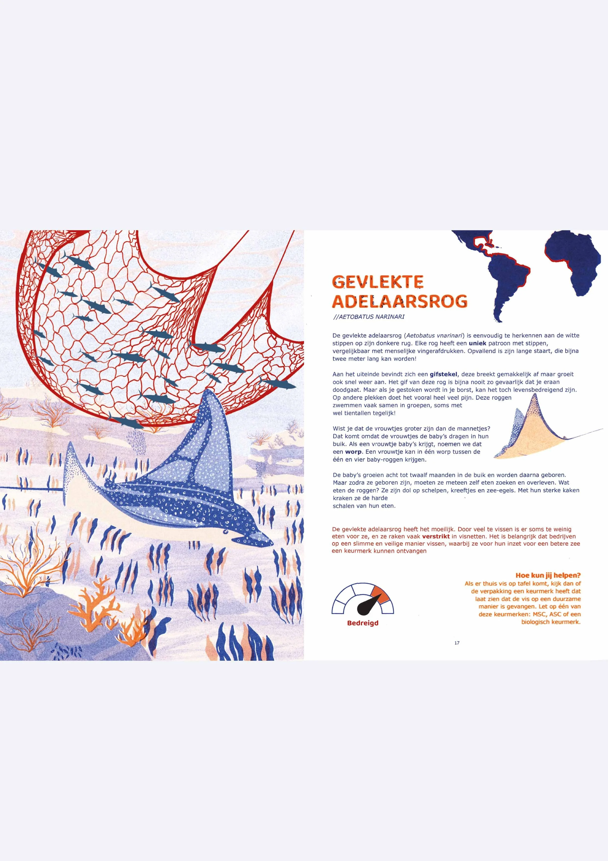 Een van de eerste uitdagingen bij het maken van het boek was het kiezen van welke bedreigde dieren ik wilde illustreren. Aanvankelijk wilde ik één dier per soort, maar dat bleek in een half jaar onhaalbaar. Door te kijken naar de verschillende bedreigingen, zoals klimaatverandering, plasticvervuiling, krimpende leefgebieden en handel, bleek dat veel dieren met vergelijkbare problemen te maken hebben.