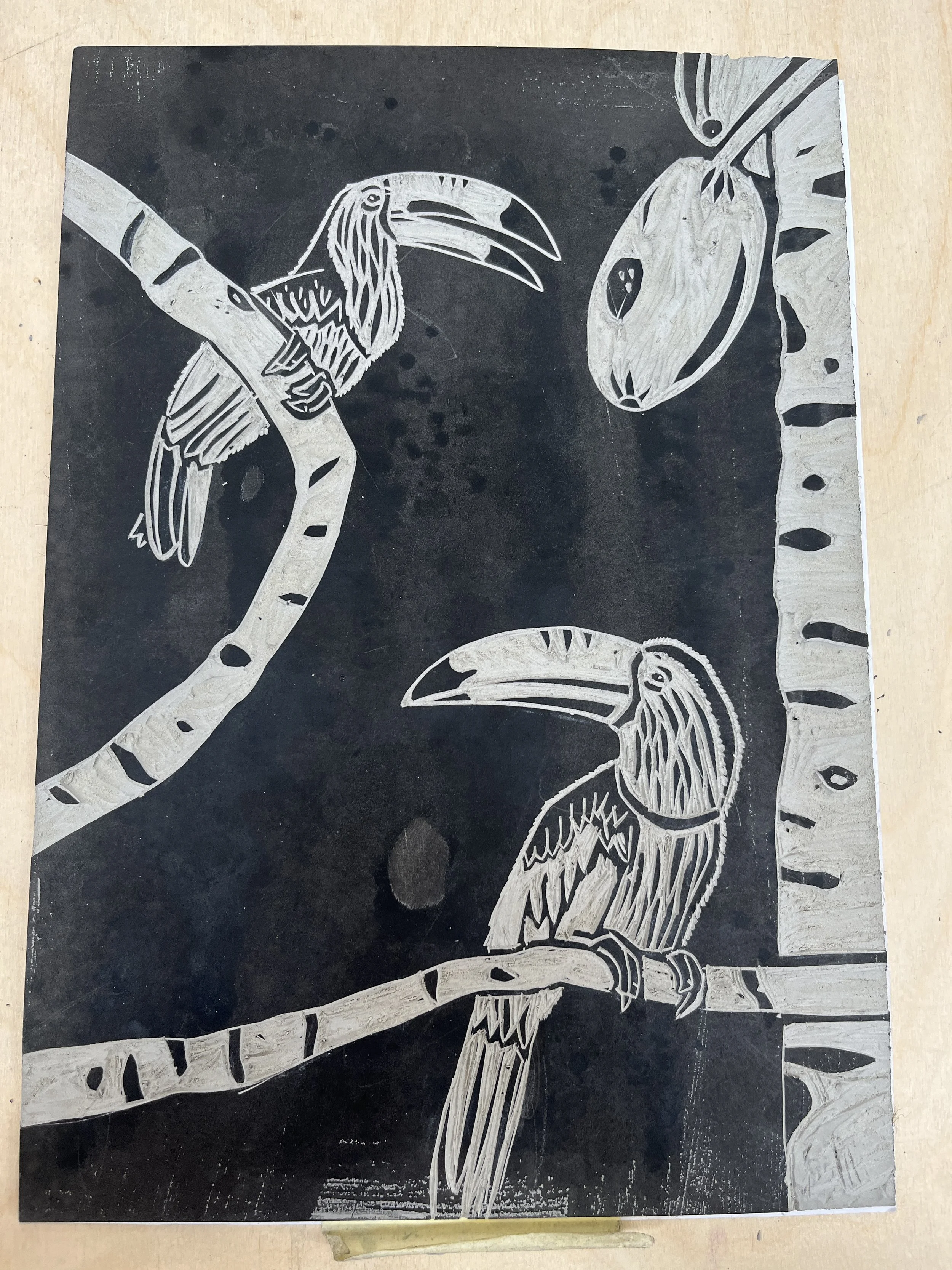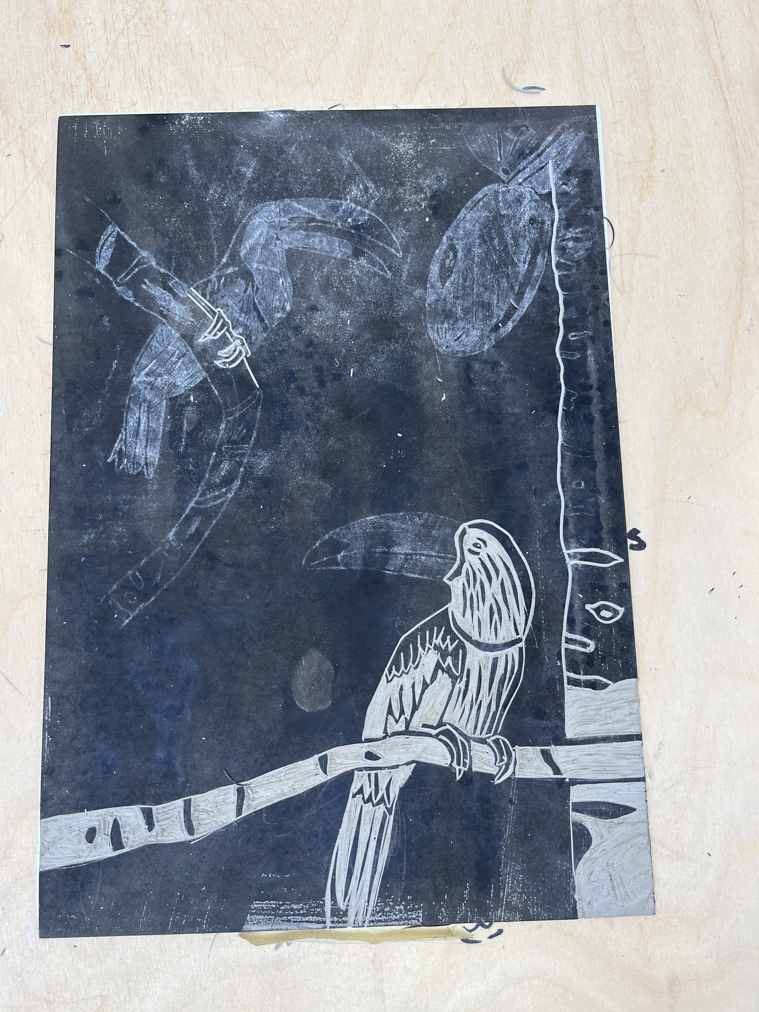 Door te experimenteren met verschillende druktechnieken, materiaal en textuur heb ik uiteindelijk gekozen om te werken met riso-print en linosnede. Door met een beperkt kleurenpalet te werken kwam er samenhang en balans binnen de vormgeving.